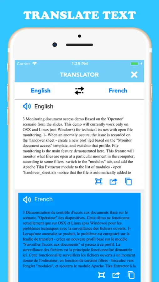 - The app displays the translated text right on the original one. It's very easy to understand the meaning of the text on the image.