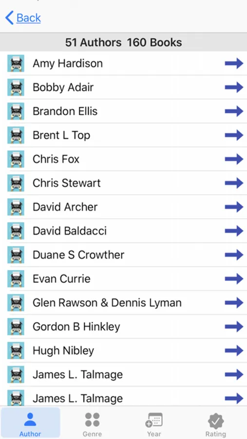 If you're interested in a book series but can't remember which ones you've read, our app can help. Just open the app and go to the menu option "Book List by Author/Genre," select the Author tab, scroll down to find your desired author, and tap to see a list of their books. You can quickly check if you've read a book in the series or not. You can also click on the series tab on the bottom and select the series from the list and see which books you have read.