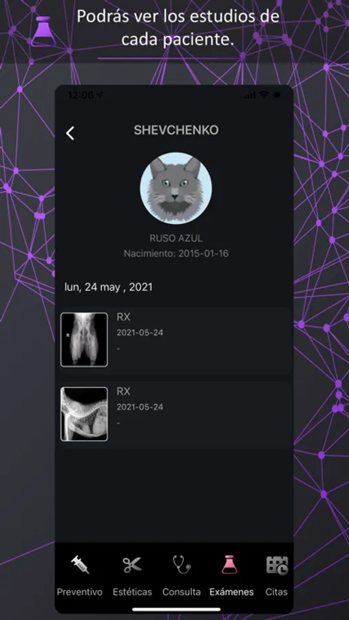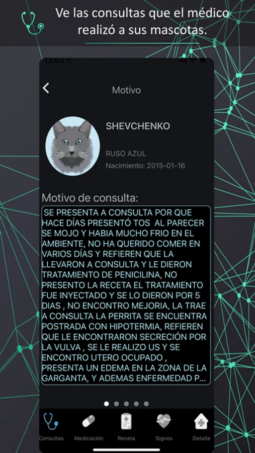 Consulte sus recetas, signos vitales, medicación, exámenes, radiografías.