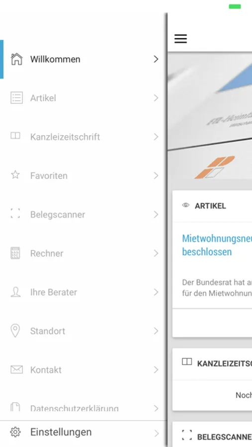 - Zugriff auf Beraterteam, Kontaktdaten der Kanzlei sowie Navigation/Anfahrt