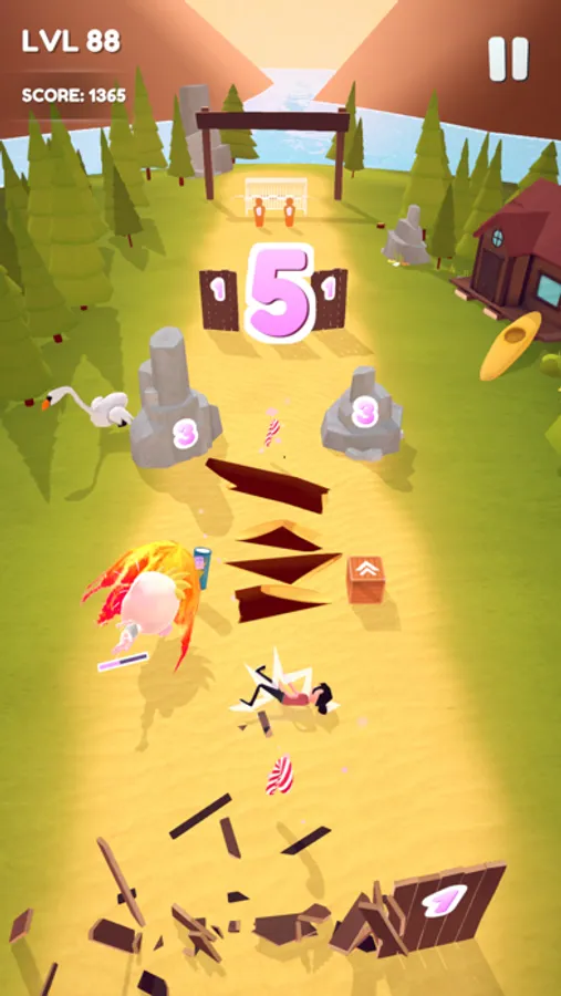 Bang your head against obstacles to create a pathway through the forest towards the finish. Upgrade you character and become the coolest person in the park!