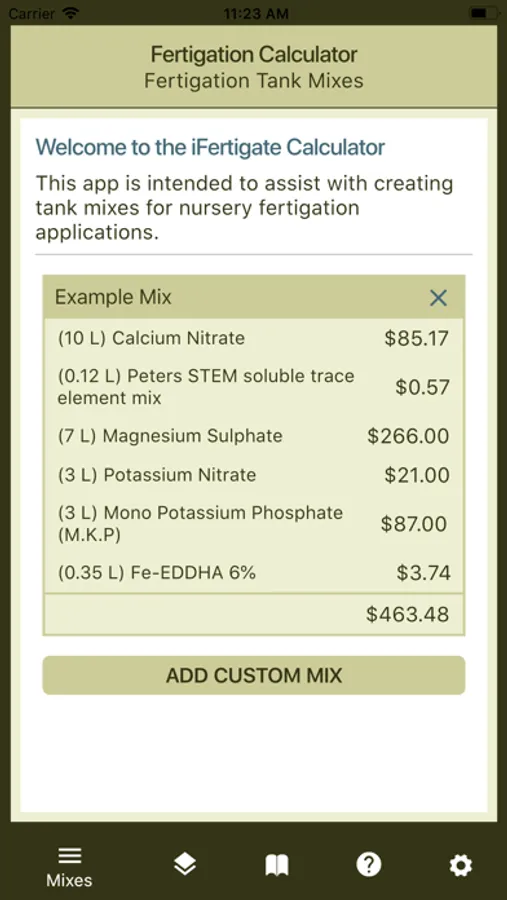 This app is intended to assist with creating tank mixes for nursery fertigation applications.