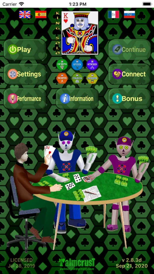 - Choice of background (texture and color) and style of face cards (English, French, German, Dutch, Russian).