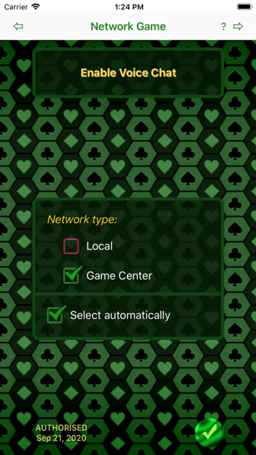 It is possible to play over local area, peer-to-peer or Game Center (Internet) network with one or two human opponents. Voice chat is supported over the Game Center network.