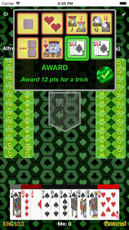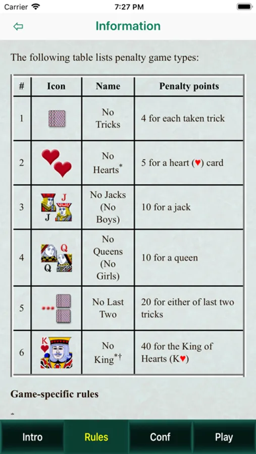 Unlike Bridge, Preferans, Belote or Euchre, this game is void of bidding. In exchange, it offers a variety of game types, each requiring its own approach and tactics. Being one of the most versatile card games, it demands deep thinking and ingenuity, representing a great challenge for an intelligent card player. The game has a simple and consistent scoring system.