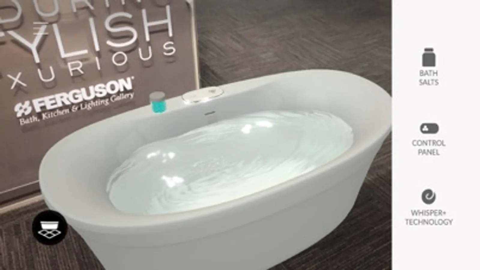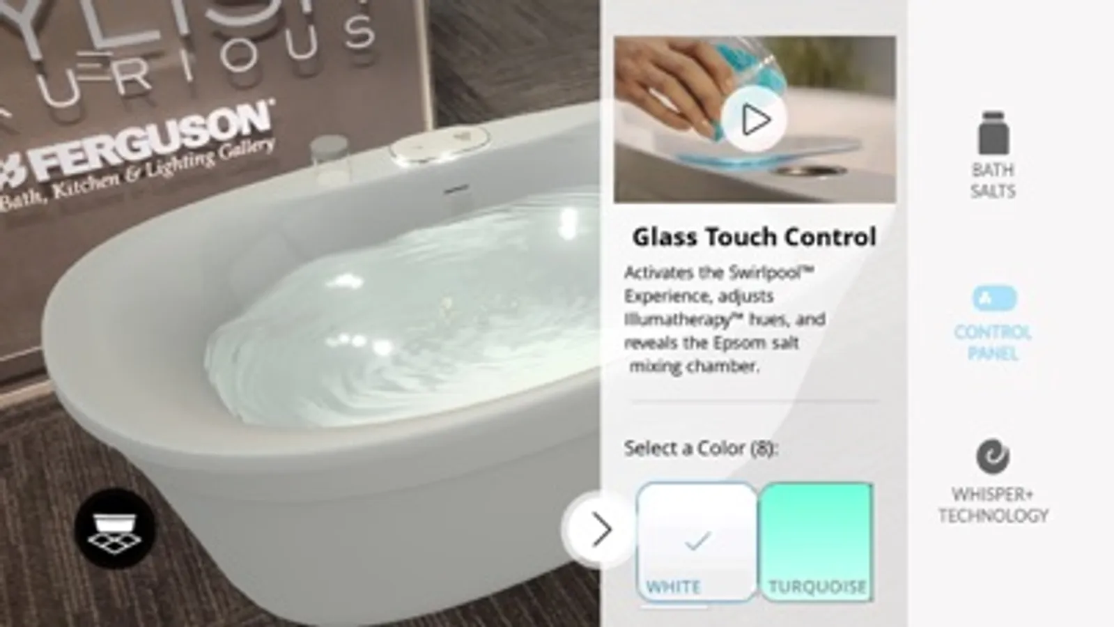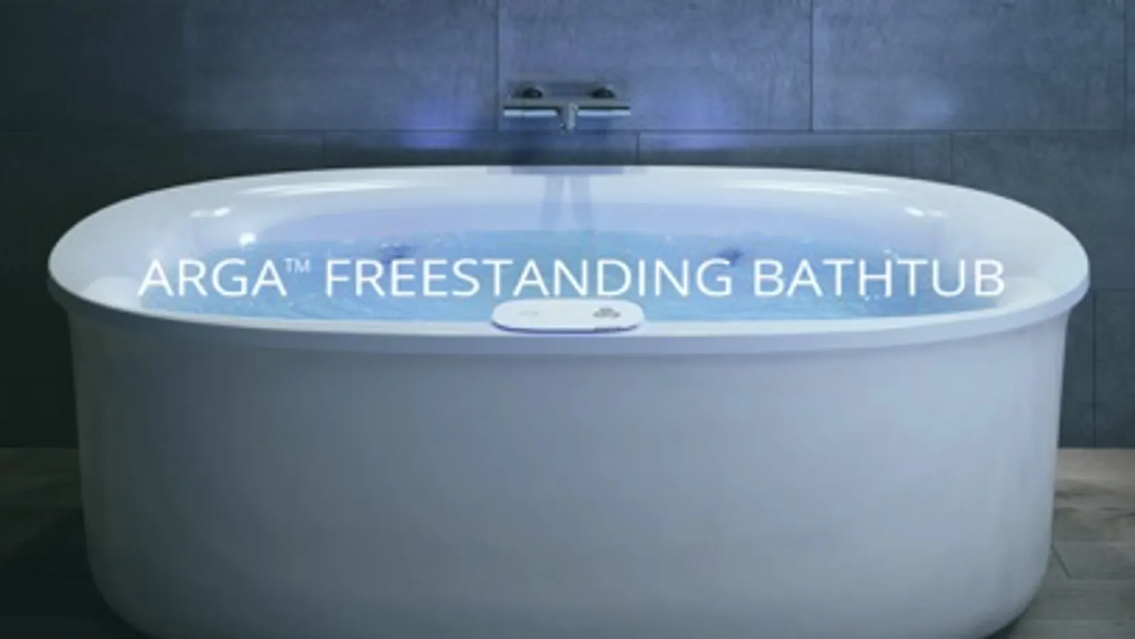 Immerse yourself in the Arga™ Classic freestanding bathtub Swirlpool™ experience anytime. Watch how to utilize the Jacuzzi® Epsom Salts in Lavender or Rosemary Mint in the proprietary salt infuser. Change Illumatherapy™ colors. See how Whisper+ Technology® quietly activates the waterfall feature and Swirlpool™ jets to swirl water gently around the bathtub, so all you hear is the sound of calming water.