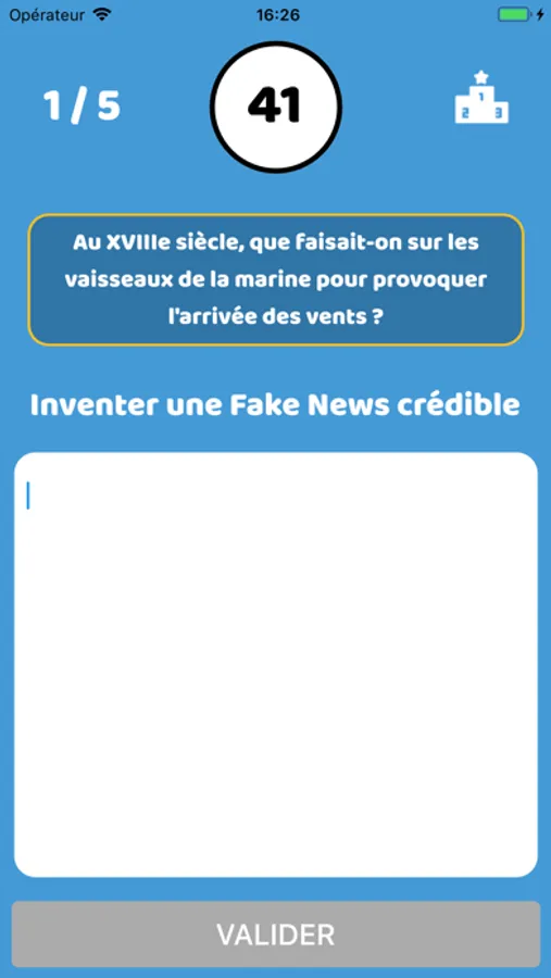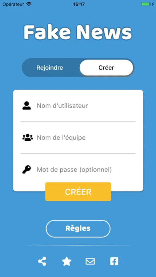 Fake News est un jeu de quiz où vous jouez en temps réel contre vos amis. Dans ce jeu, vous devrez faire preuve d'imagination et d'originalité. En effet, à partir d'une question, vous devrez inventer la Fake News la plus crédible pour bluffer vos amis.