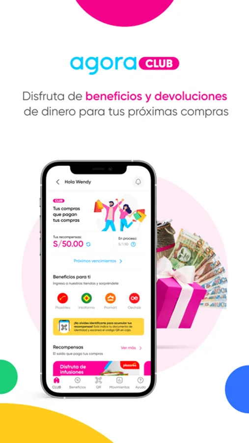 Solo identifícate para ganar beneficios: El único requisito para disfrutar y acumular beneficios de club es brindar tu documento de identidad y escanear el QR de la tienda desde tu app agora.