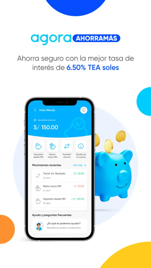 Agora AHORRAMÁS: Crea tu cuenta de ahorros digital en agora PAY y comienza a ahorrar sin monto mínimo con una tasa de 6.50% TREA soles. Además, podrás recibir y hacer transferencias interbancarias con el CCI de tu cuenta.