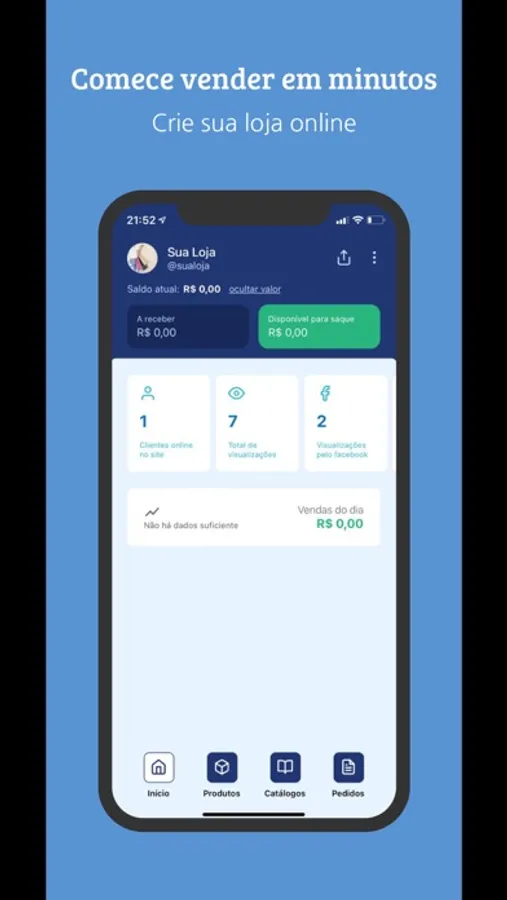 Com o E-vendi, você cria sua loja em minutos e disponibiliza seus produtos para seus clientes em minutos.