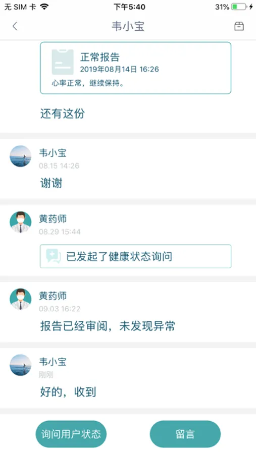 专家可随时查看并回复H3用户留言,更全面的掌握用户的健康状况