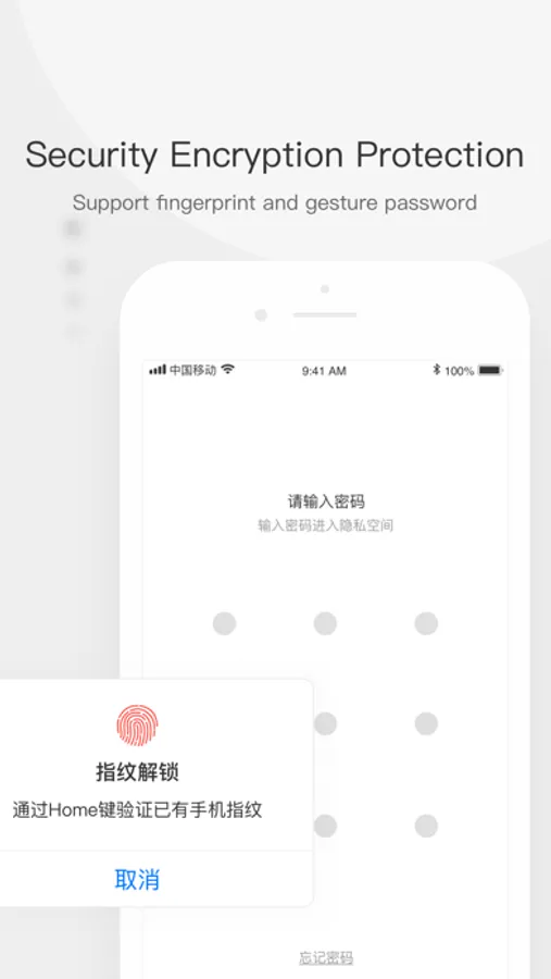 Zone folder, a private file management software, which is very safe and efficient. Users can put photos, videos or files into the Zone folder classification management. Users can turn on recognition of your fingerprint or face when sighing up in order to protect the security of your software and create multiple private spaces to store files you don't want to be known by others. Even if your girlfriend were able to access the software with a password and one of the private Spaces with a gesture password, she would not be able to find the "secret files" hidden in many parallel spaces. Each private space is set up independently and has the gesture password that you know . In order to ensure absolute confidentiality, users can only retrieve the password through the pre-left confidential mailbox.