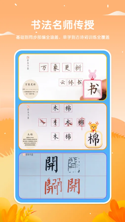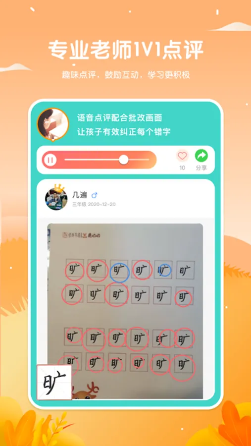 同步最新部编教材,名师讲课,专业老师即时1V1点评,全面提升孩子能力,是孩子学习写字道路上的不二之选。