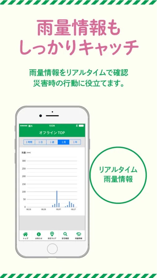 表示内容を切り替えたり、現在地を確認できるため、避難の要否、避難場所、避難ルートを検討するのに役立てることができます。