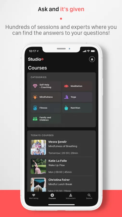 You can learn well-being concepts such as Mindfulness, Meditation, Yoga, Diet, Sports and Coaching with live video calls with experts.