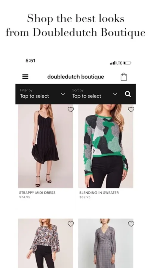 Welcome to Doubledutch’s Boutique’s mobile app. You can find modern lines and indie designs. We promise a shopping experience just as unique as our clothes!