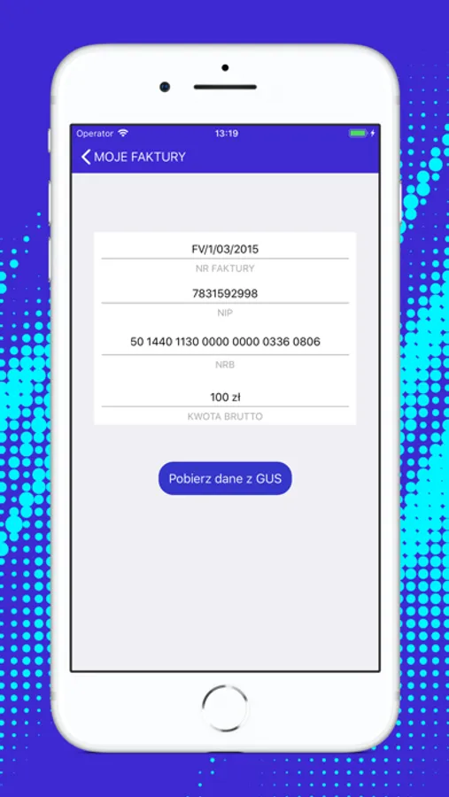 W jaki sposób to działa? Aplikacja analizuje zeskanowany obraz, zamienia obraz na tekst, odczytuje z niego dane i przypisuje je do odpowiednich kategorii. Korzysta z algorytmów z elementami sztucznej inteligencji, które pozwalają na odpowiednią analizę i rozpoznanie tekstu. Uzupełniane automatycznie pola to: numer faktury, numer rachunku bankowego, NIP oraz kwota brutto. System dekoduje dokument i rozpoznaje litery oraz słowa niezależnie od użytej czcionki. Po przeskanowaniu dokumentu, możesz pobrać również dodatkowe informacje, czyli nazwę oraz adres firmy. Żeby to zrobić, należy jedynie kliknąć przycisk “Pobierz dane z GUS”. Dane z Głównego Urzędu Statystycznego automatycznie pojawią się w aplikacji.