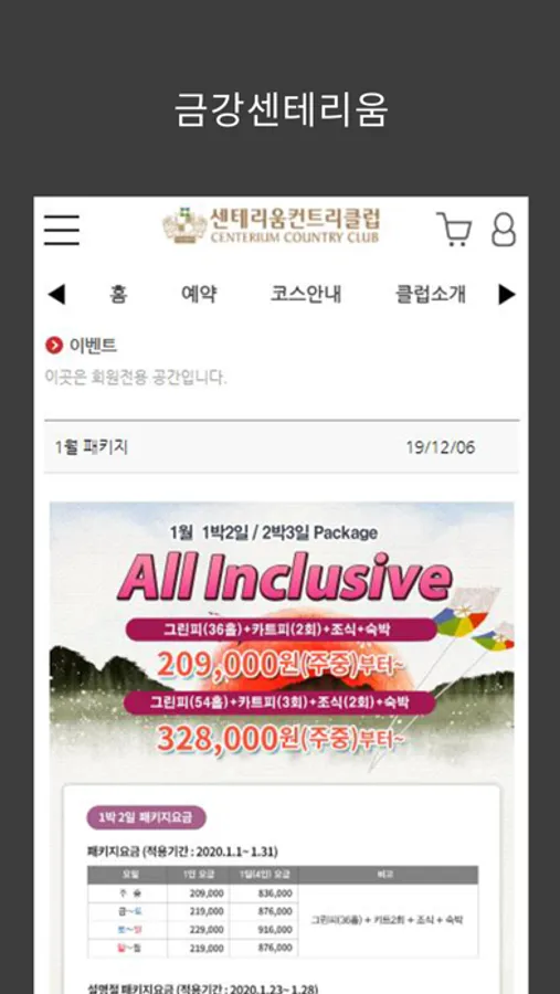 숙박패키지, 27홀라운드, 마일리지 쿠폰 발급, 조인예약 등 수많은 기능들을