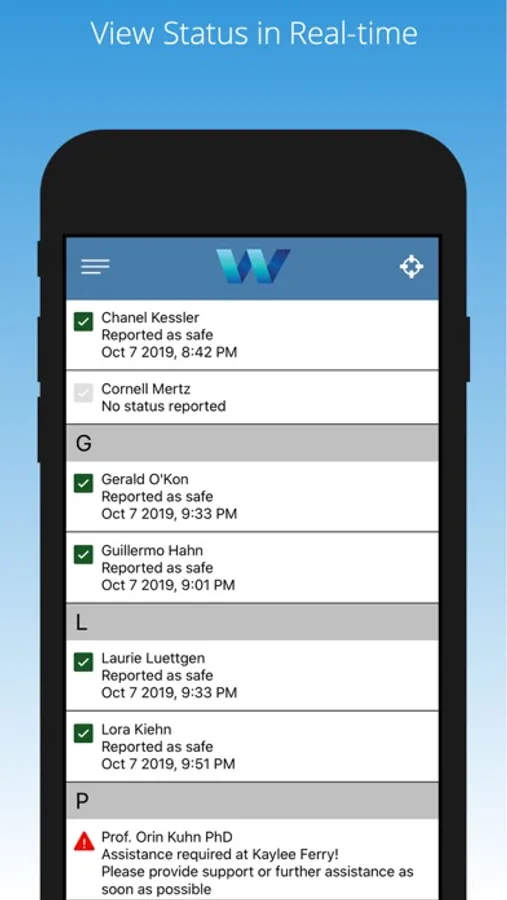 - Allow users to report their status, and request assistance if needed