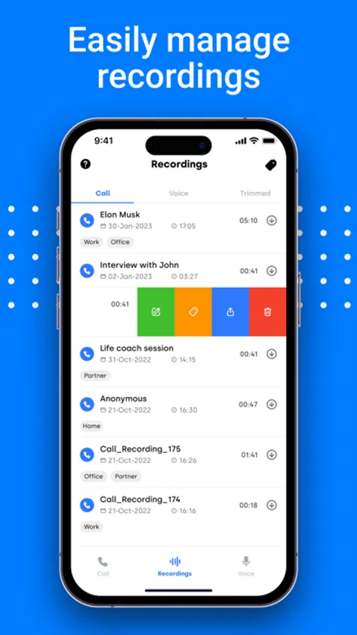 Call Recorder ◎ offers everything you need to record your calls and manage recordings: