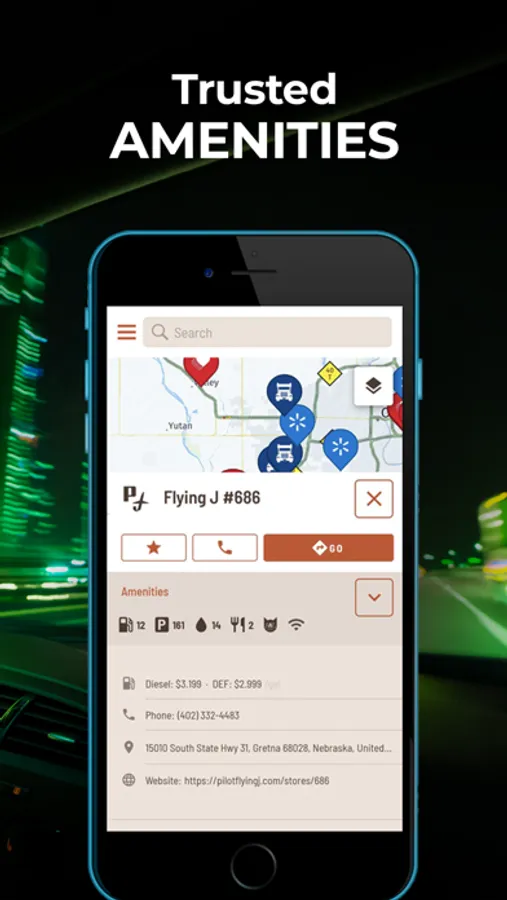 ・Points of Interest include easy click to call buttons, diesel pricing, hours of operation and amenities