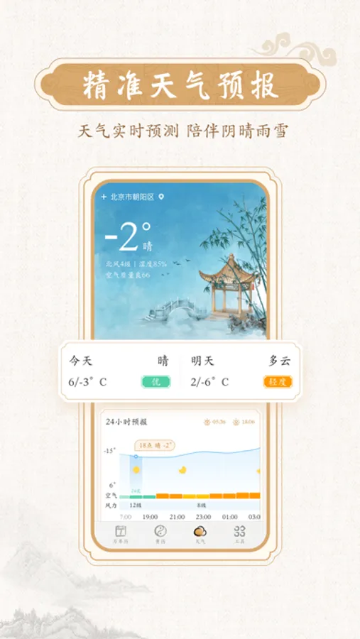 全方位的生活服务,天气预报、黄道吉日、凶神百忌等一目了然