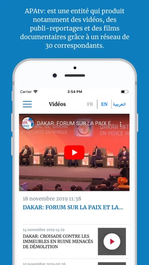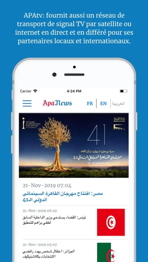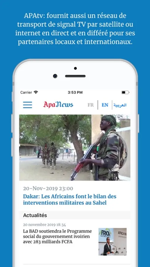 Cette application est une agrégation de l'ensemble de ses sites news, alimentés en temps réel, par un réseau de correspondants basés dans chaque pays d’Afrique et dans chacune des plus grandes capitales d'Europe, d'Asie ou des Amériques.