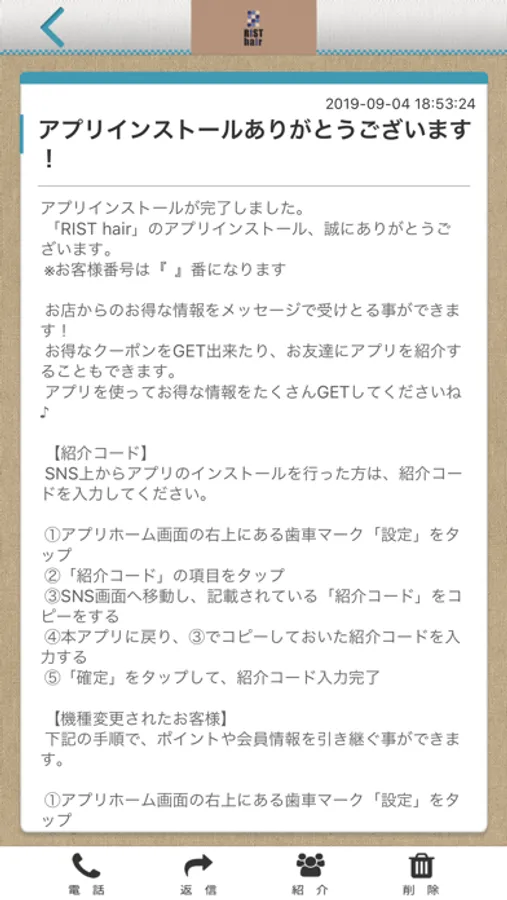 RISThairのアプリをSNSを通じてお友達に紹介する事ができます。