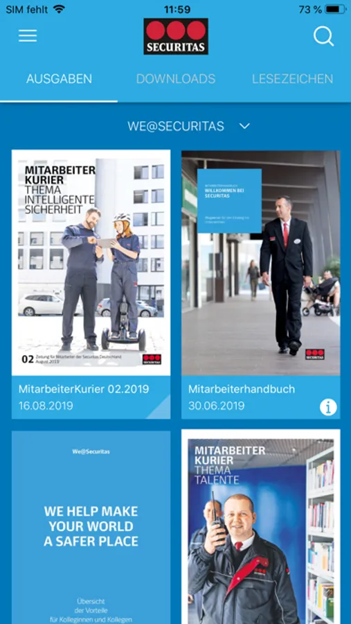 Mit der App We@Securitas stellt Securitas Deutschland seinen Mitarbeiterinnen und Mitarbeitern Informationen über das Unternehmen sowie die Mitarbeiterzeitung digital zur Verfügung.
