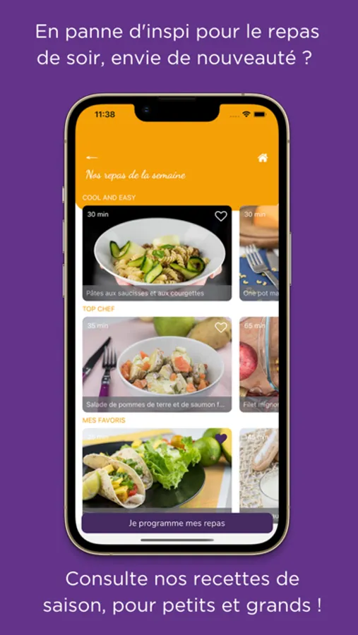 * Recettes de cuisine de saison et planification des menus de la semaine.