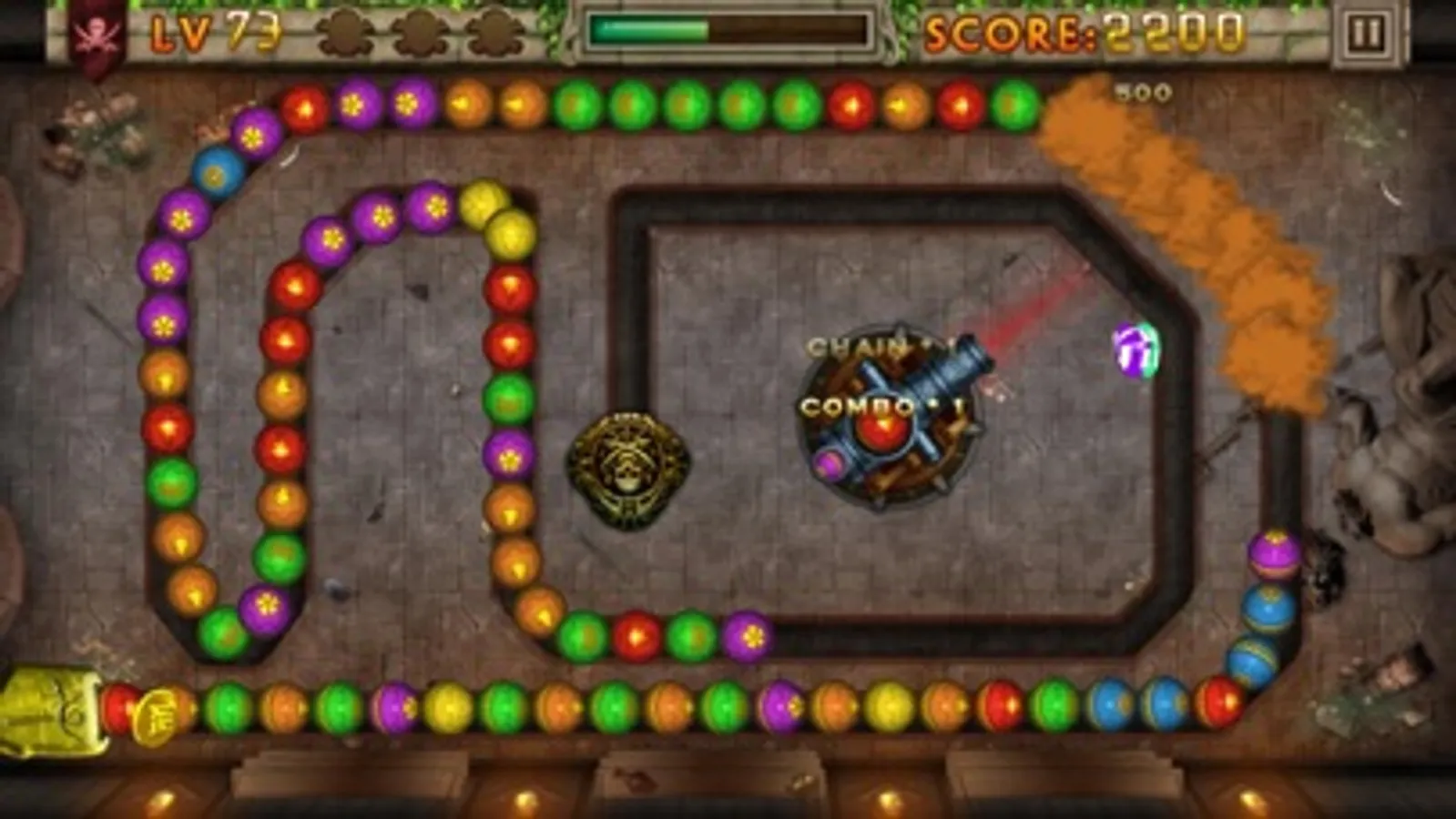 Your target is to eliminate all the marbles,but don't let the chain reach the end.