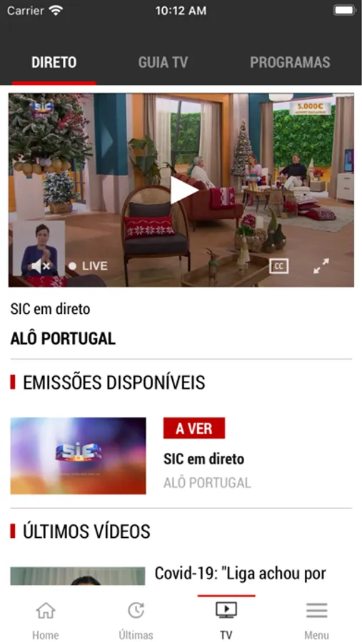 Veja as emissões em direto da SIC, além das transmissões especiais e exclusivas para a app.