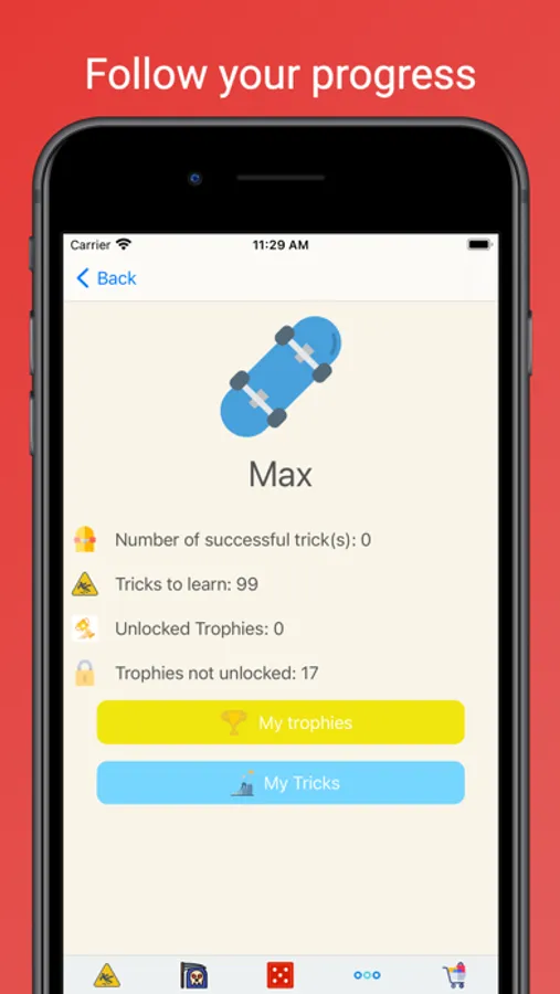 Surpass yourself and unlock all the trophies of Skate Tricks!