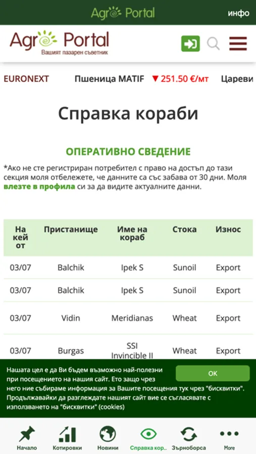 With this application, AgroPortal subscribers can view news, prices and quotes, ship references, view AgroPortal events, Facebook, YouTube, send inquiries to AgroPortal team and receive the latest updates from the platform.