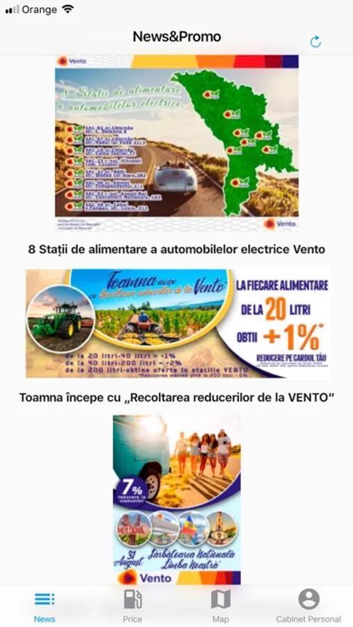 Aplicația mobilă Vento v-ă permite obținerea celor mai recente noutăți și promoții, prețurile la combstibil în timp real și cea mai detaliată informație despre contul tău Vento.