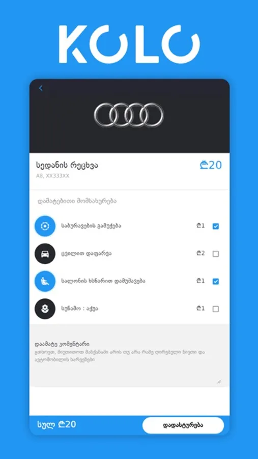 Customers no longer need to search for free service centers, stand in traffic jams or wait in lines. We make car wash, dry cleaning or even oil replacement easier with the KOLO app. Our professional valets will pick up and return the car while the customer is at work or even resting at home with their family.