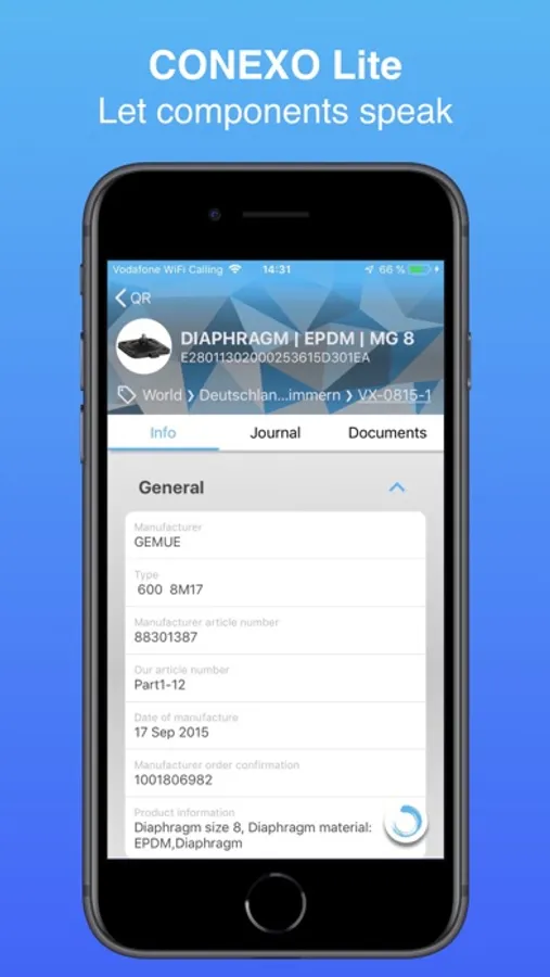 CONEXO Lite provides unique information such as general purpose data, serial numbers and documents.