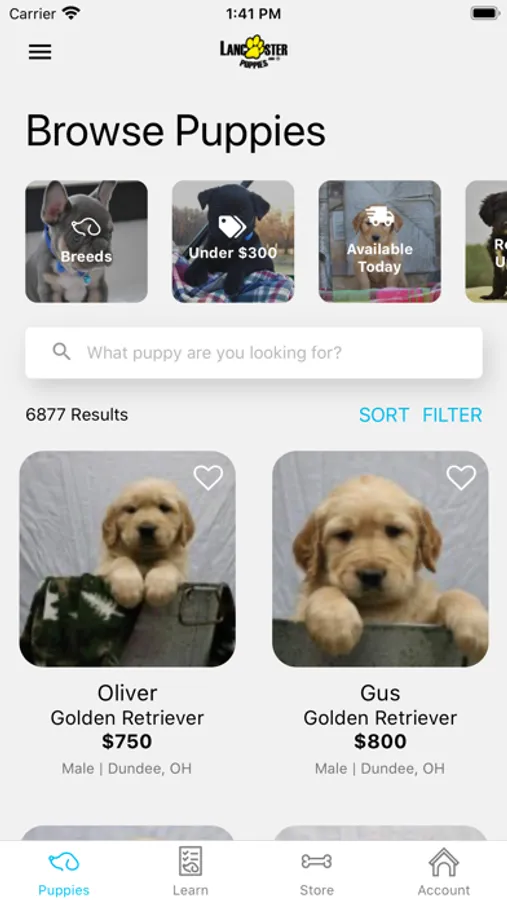 Looking for a new furry family member? Browse the largest marketplace of puppies from sellers across the Northeast and Midwest on the Lancaster Puppies App. This all-in-one app pairs reputable breeders and healthy puppies with future dog owners. Find your perfect dog by filtering by breed, size, sex, location, and price.