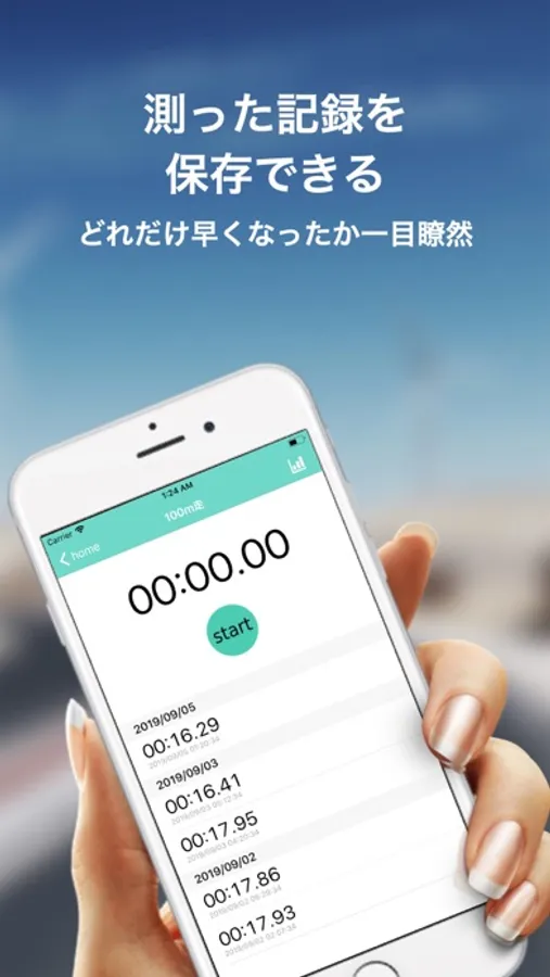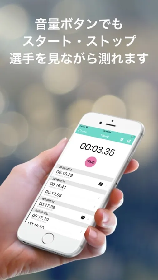 iPhoneの画面ではなく選手を見ながらスタート・ストップが可能です。