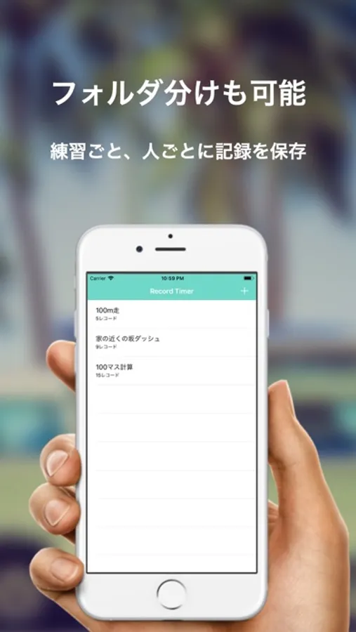 フォルダ分けも可能なので、計測する人ごと・競技ごと・距離ごとにまとめて記録を残せます。