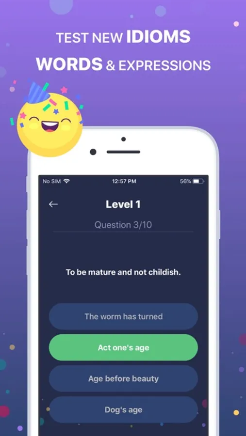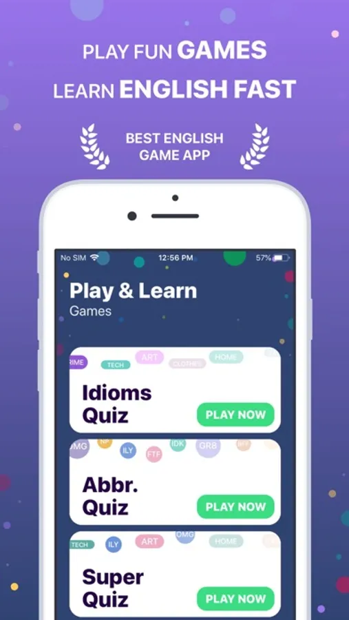 Boost your English in 1 month by playing fun games! Learn every day new idioms and expressions, slang words, useful text abbreviations and synonyms.