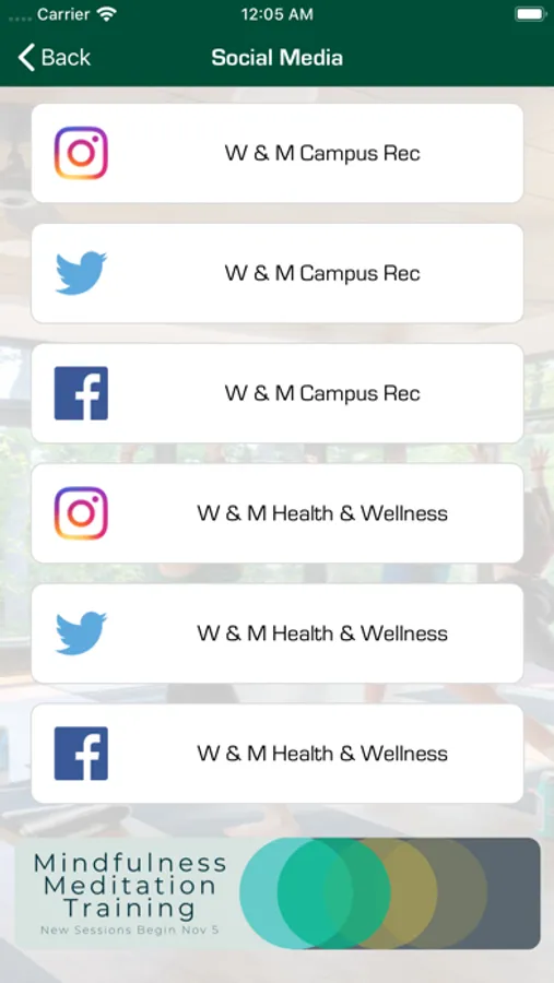 William & Mary Health & Wellness is committed to optimizing the well-being of our community. We strive to promote flourishing and resilience through education, service and support and to enhance and foster a lifelong appreciation for health, wellness and recreation. This app includes opportunities and information provided by Campus Recreation, the Counseling Center, Health Promotion, and the Student Health Center. Register and connect with opportunities such as fitness and wellness classes, health coaching, mindfulness, outdoor trips, sport clubs and intramurals.