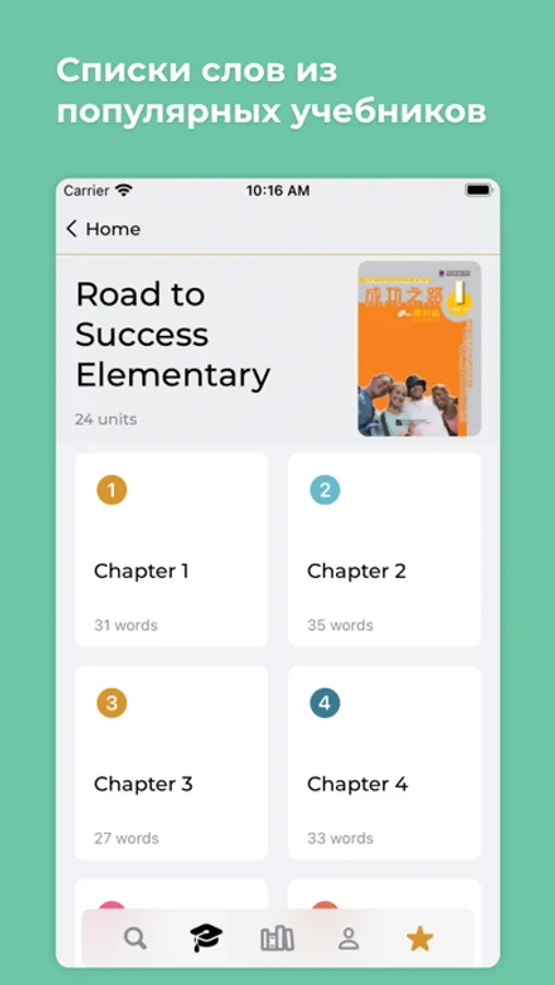 - Тематические списки слов и списки слов по урокам из популярных учебников;