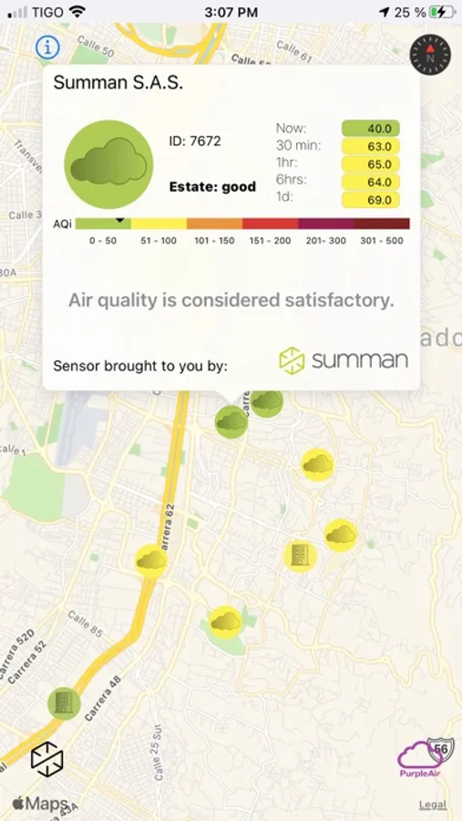 AIR POLLUTION is an app that consults information from the website http://www.purpleair.com, which is responsible for monitoring the air quality in real time, said website has installed air monitors in different cities of the world that allow any user read in real time the information captured there, which is why SUMMAN S.A.S assumes no responsibility for the information provided, let alone in the quality of it, as this is an obligation of http://www.purpleair.com who is the one who supplies reported information.