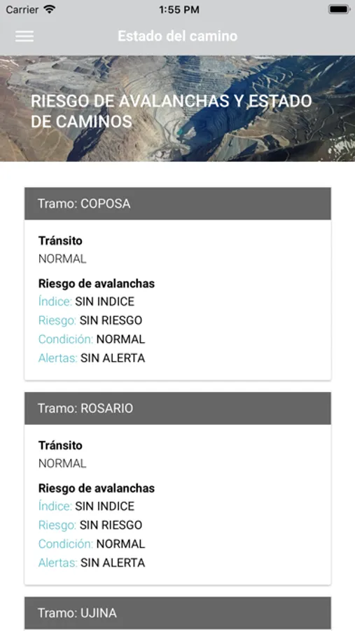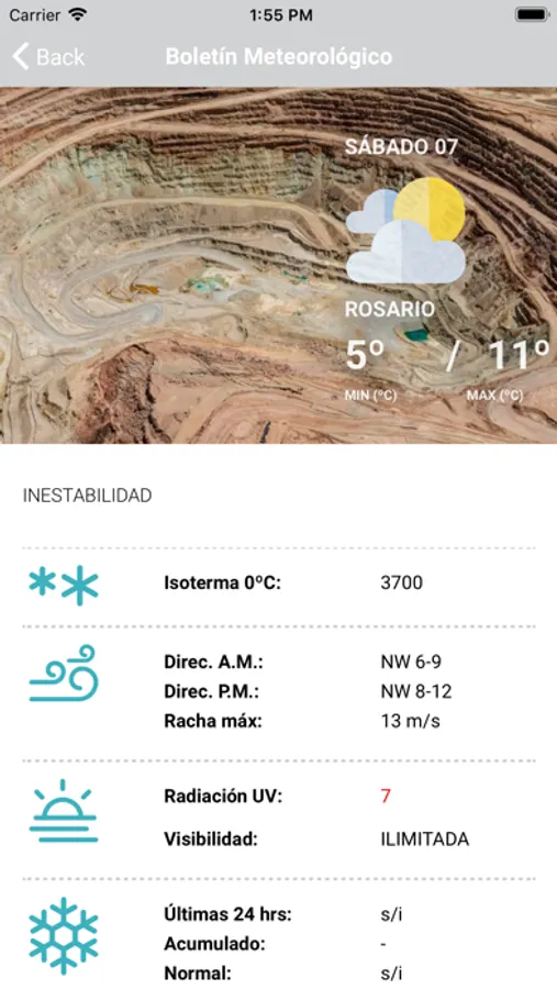 Con esta aplicación podrás encontrar distintos tipos de reportes sobre el clima y condiciones generales para los distintos sectores asociados a la minera Collahuasi.