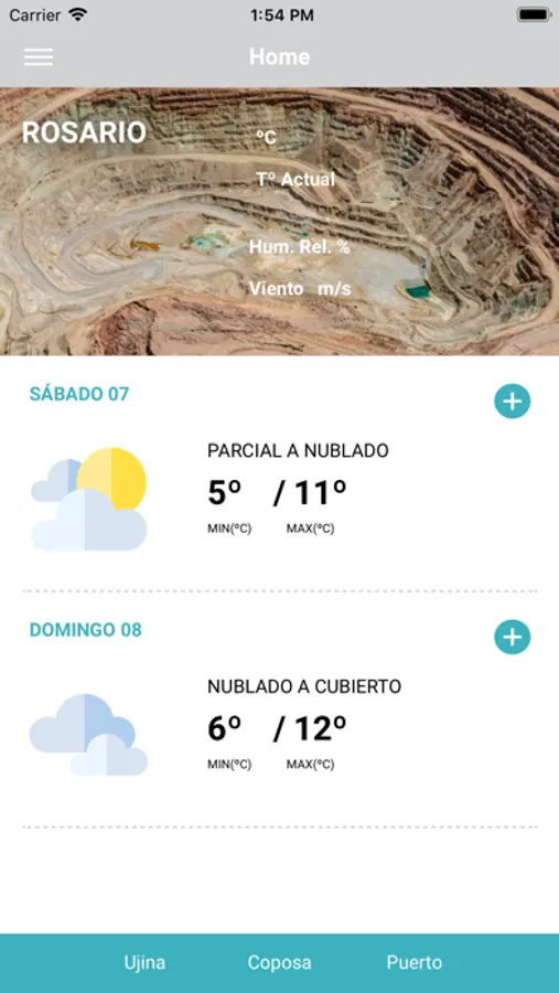 - Reportes meteorológicos para Rosario, ujina, Coposa y Puerto