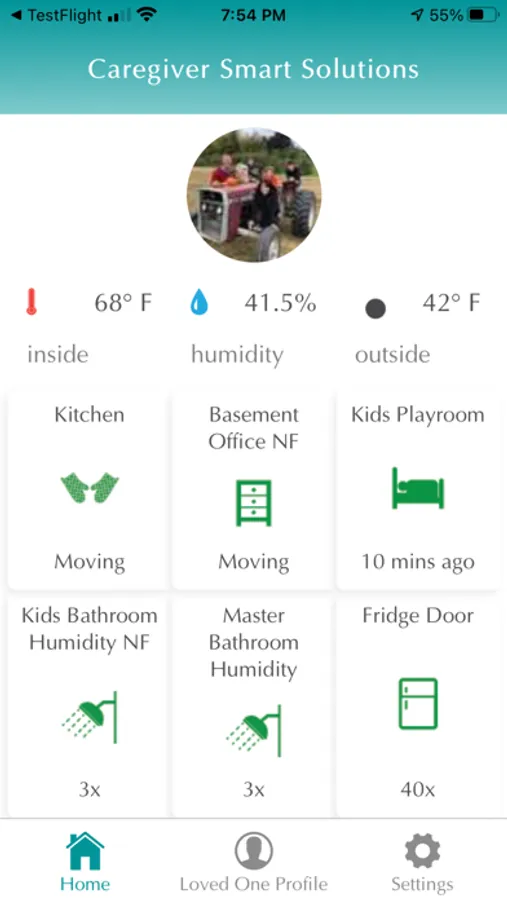 • Small, non-intrusive sensors are placed discretely around the home. These sensors monitor your loved ones’ activities and feed information to our app.