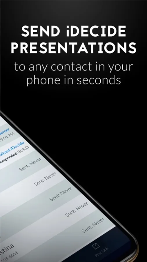 The iDecide Interactive iOS app. Now you can send iDecide presentations to any contact in your phone.