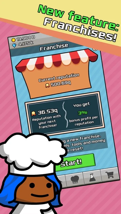 Do you want to become the owner of the biggest restaurant on the earth? Maybe on the universe? You can on Idle Cookinator! Start small selling lemonades to get better and bigger! Invest in research to learn new recipes to get more and more money! Manage and build your restaurant to get maximum profit!