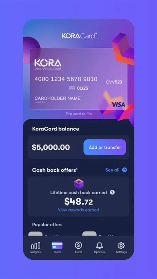 Track your spending, receive personalized financial tips and get access to up to $3000 of KoraCash* that you can use for whatever you need and pay back over time.